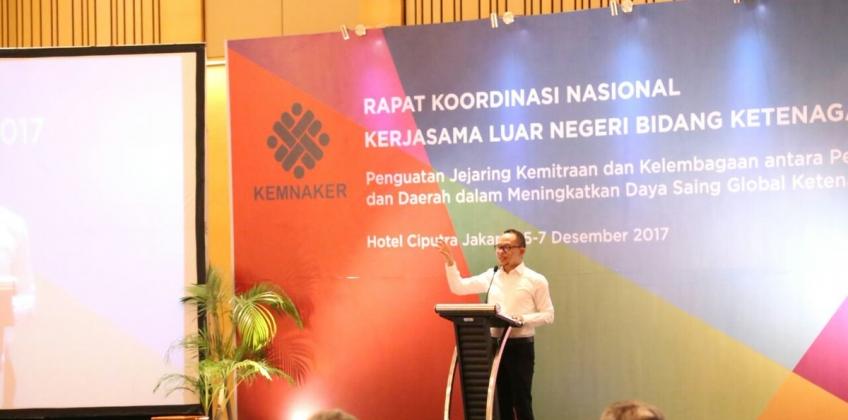 Bagi para tenaga kerja Indonesia, bekerja di luar negeri memiliki banyak resiko dan juga sekaligus membuka peluang. Agar kedua hal tersebut bisa berjalan seimbang maka pemerintah harus mampu mengelola penempatan dan perlindungan pekerja migran di luar negeri dapat berjalan dengan baik. Hal ini disampaikan oleh Menteri Ketenagakerjaan RI (Menaker) M. Hanif Dhakiri saat memberikan arahan pada acara pembukaan Rapat Koordinasi Nasional Kerjasama Luar Negeri Bidang Ketenagakerjaan pada Selasa (5/12) di Jakarta.