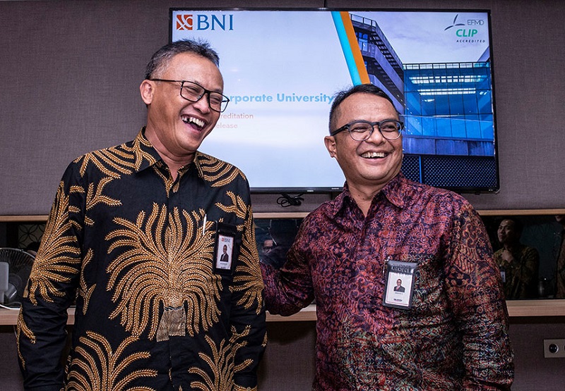 PT Bank Negara Indonesia (Persero) Tbk atau BNI meraih akreditasi Corporate Learning Improvement Process (CLIP) dari European Foundation for Management Development (EFMD) bagi BNI Corporate University karena telah berhasil menunjukkan visi, misi, strategi, inovasi, dan konsistensi dalam praktek operasionalisasi pengembangan kompetensi pegawai BNI. Hal tersebut terungkap dalam Diskusi Update Terbaru BNI yang diselenggarakan BNI pada Selasa (19/3) di Jakarta.
