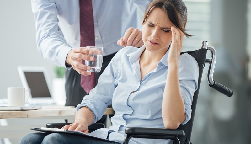 Disabled business woman with headache