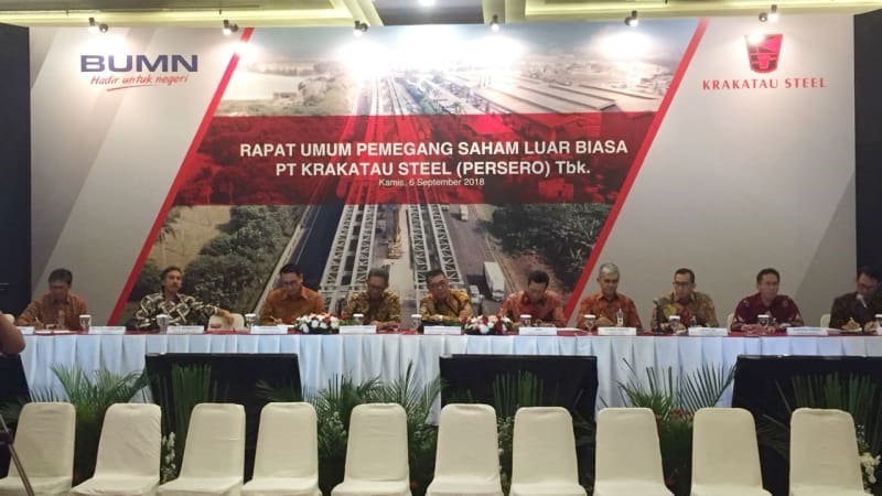 Dalam Rapat Umum Pemegang Saham Luar Biasa (RUPSLB) PT Krakatau Steel (Persero) Tbk (KRAS) menunjuk Silmy Karim sebagai Direktur Utama menggantikan Mas Wigrantoro Roes Setyadi pada Kamis (6/9) di Balai Kartini, Jakarta.